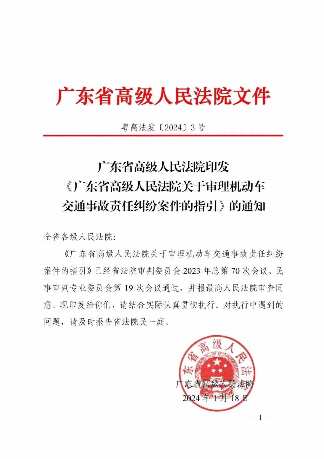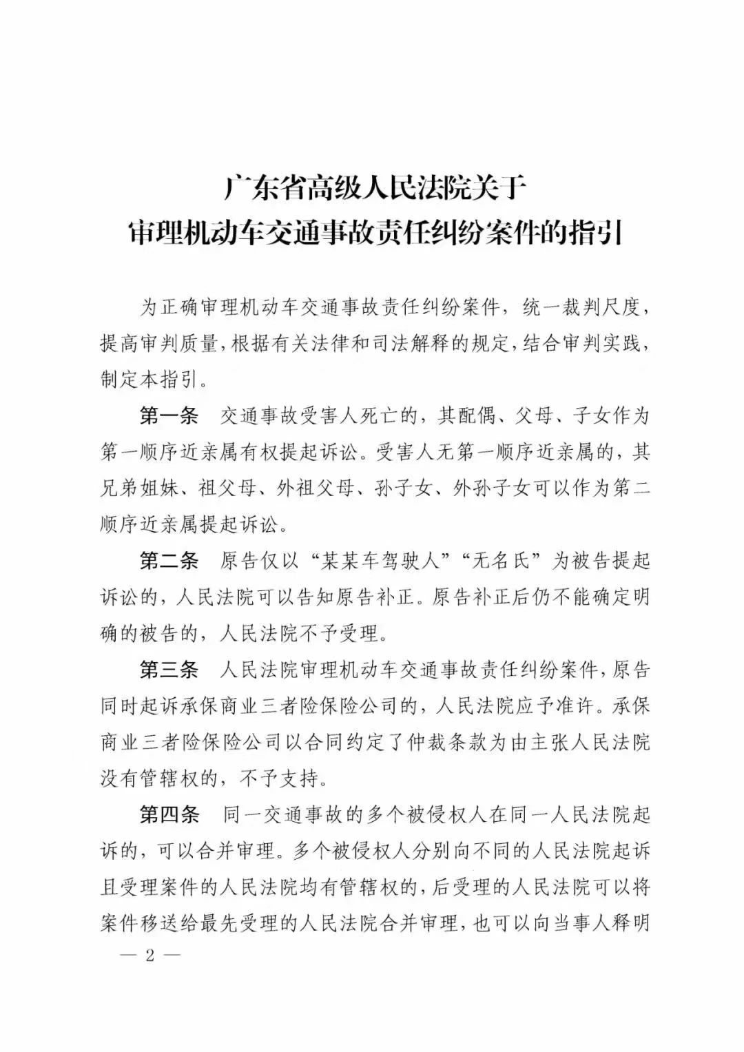 广东省高级人民法院关于审理机动车交通事故责任纠纷案件的指引