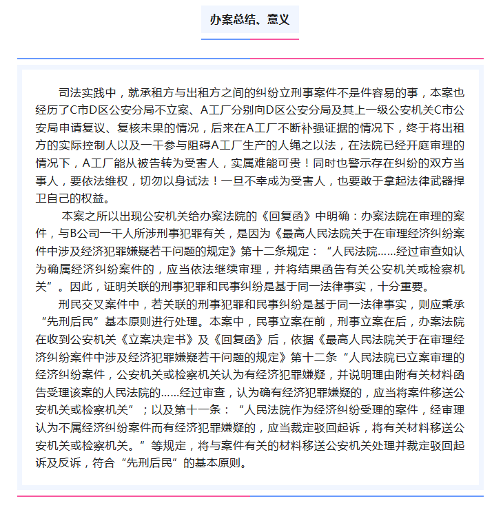 案例分享|埔穗律师代理的租赁合同纠纷案被告反转成为刑事被害人